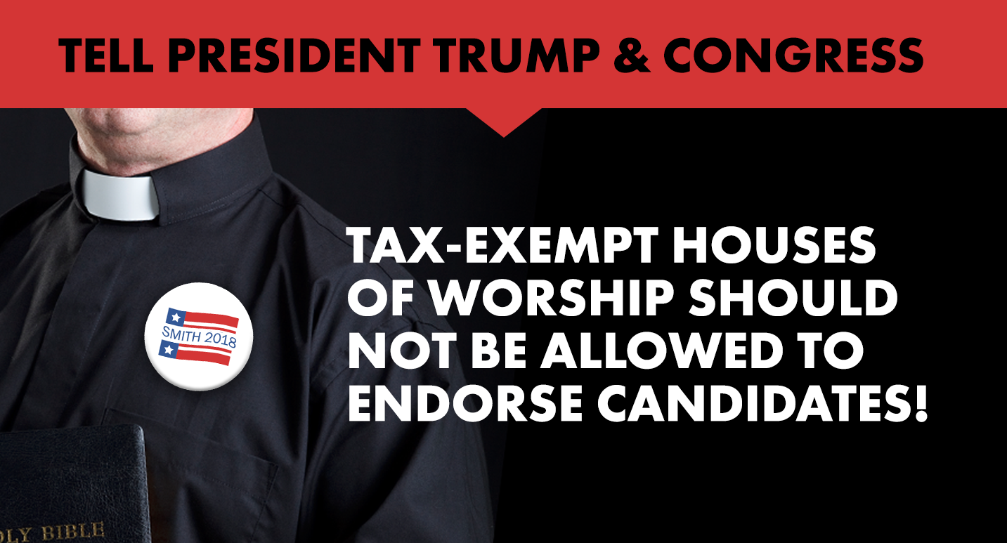 According to several recent polls, the vast majority of Americans—including the majority of people of faith and faith leaders—oppose allowing churches and places of worship to endorse political candidates while retaining their tax-exempt status. In addition, 99 religious and denomination organizations recently sent a letter to Congress telling it to protect the law. And 4,500 tax-exempt organizations just submitted a similar letter to Congress.